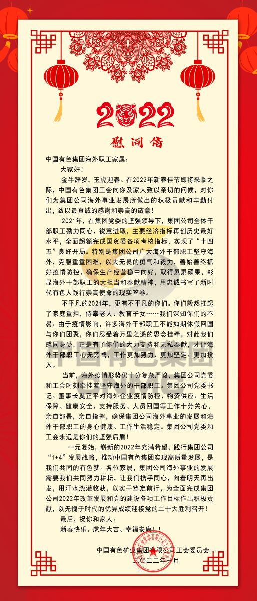 致中國(guó)有色集團(tuán)海外職工家屬的慰問信